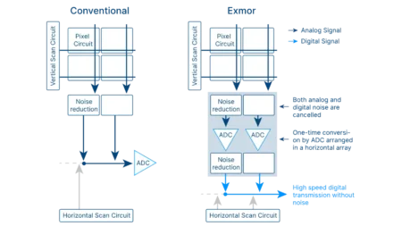 یکی از عوامل موثر در کیفیت بالای تصویر سنسورهای IMX، فناوری خاصی از سونی به نام Exmor است که در آن سیگنال آنالوگ کاهش نویز ثبت شده توسط سنسور، هنگام خواندن پیکسل ها مستقیماً به سیگنال دیجیتال تبدیل می شود. این رویکرد سنسورهای IMX را از رقبا متمایز می کند و نه تنها عملکرد نویز را بهبود می بخشد، بلکه امکان نرخ فریم بالاتر را نیز فراهم می کند.