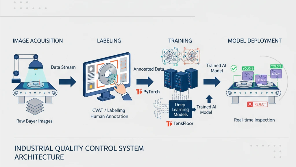 پیادهسازی یک پروژه کنترل کیفی با دوربین باسلر و دیپلرنینگ شامل چهار مرحله کلیدی است: